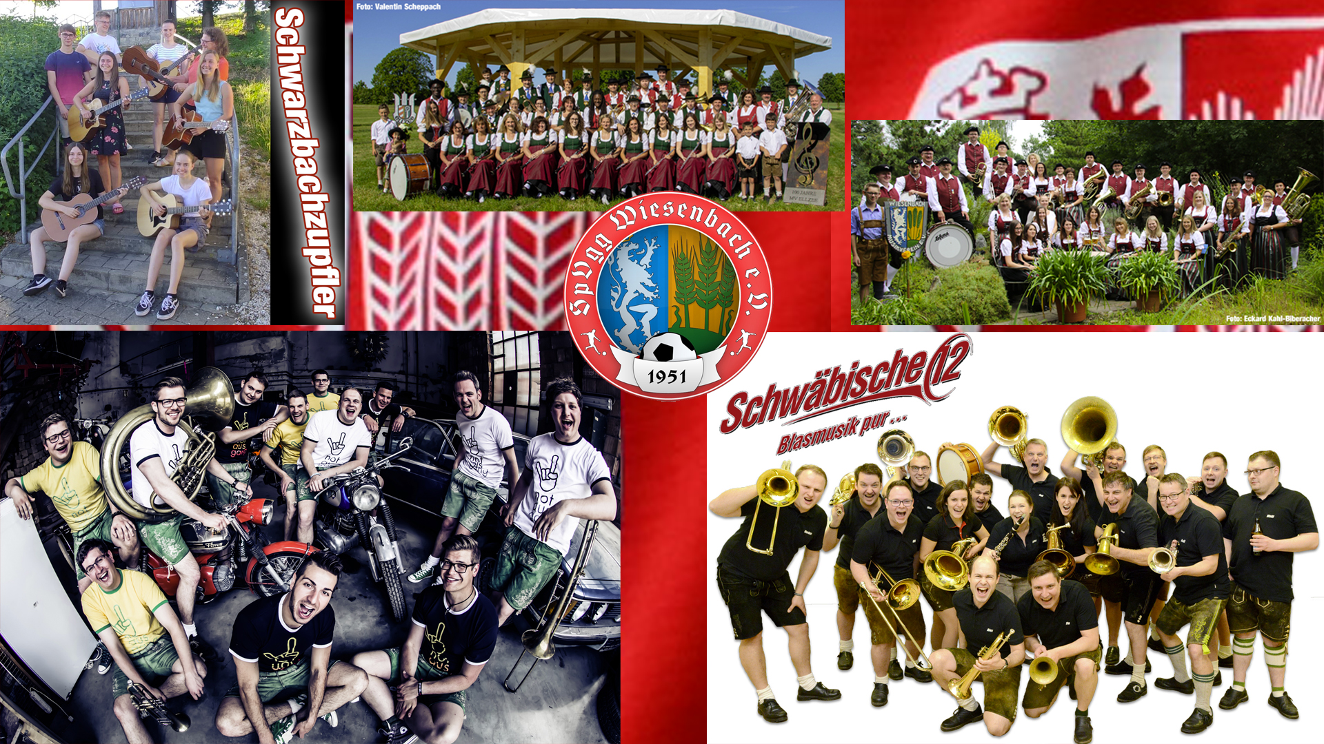 Schwäbische 12 - spielen zum Festausklang am Sonntagabend in WiesenbachBegleiten musikalisch den Festausklang am Sonntagabend - Schwäbische 12. Und sie heißen so weil "der mittlere Breitengrad der Wohnorte aller unserer Musikanten wird multipliziert mit dem durchschnittlichen Erdkrümmungswinkel derselben. Das Ergebnis dieser Rechnung nun nur noch mit dem Volumenprozent unseres Lieblingsbieres verketten sowie mit der durchschnittlichen Rohrlänge einer normalen B-Tuba mitteln und siehe da: wie sicher nun jeder auf einfache Weise feststellen kann ergibt sich hieraus (fast) genau die Zahl 12." Mehr zur Band "Schwäbische 12" auf deren Webseite. Foto: Schwäbische 12