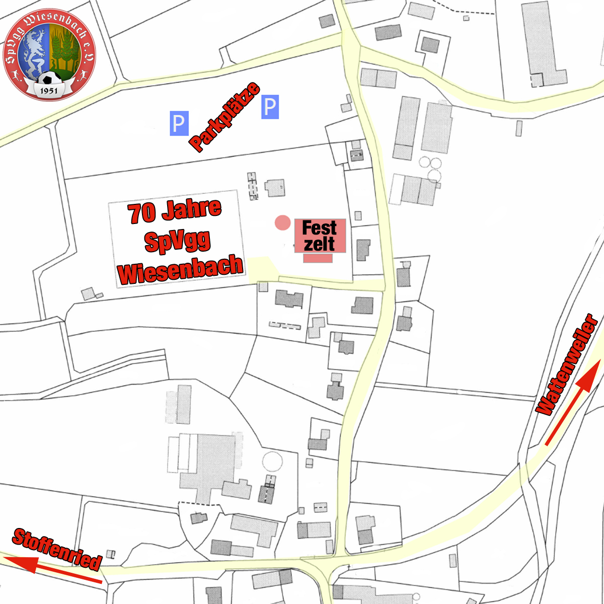 Festplatz und Parkplätze am Sportgelände der SpVgg SpVgg WiesenbachFestplatz und Parkplätze am Sportgelände der SpVgg SpVgg Wiesenbach - klicken für größere Ansicht. Für's Navi: Unterwiesenbach, Sausenthalstraße 17, 86519 Wiesenbach