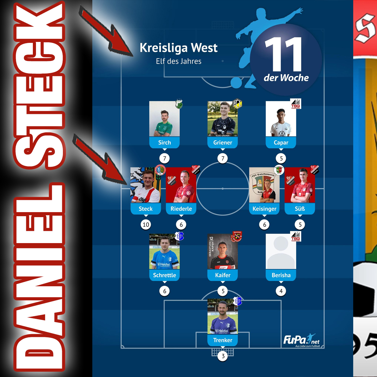 Daniel Steck ist in der FuPa Elf-des-Jahres, Saison 22/23, der Kreisliga West - zehn Einzelnominierungen wurden am Ende der Saison nochmals "honoriert".