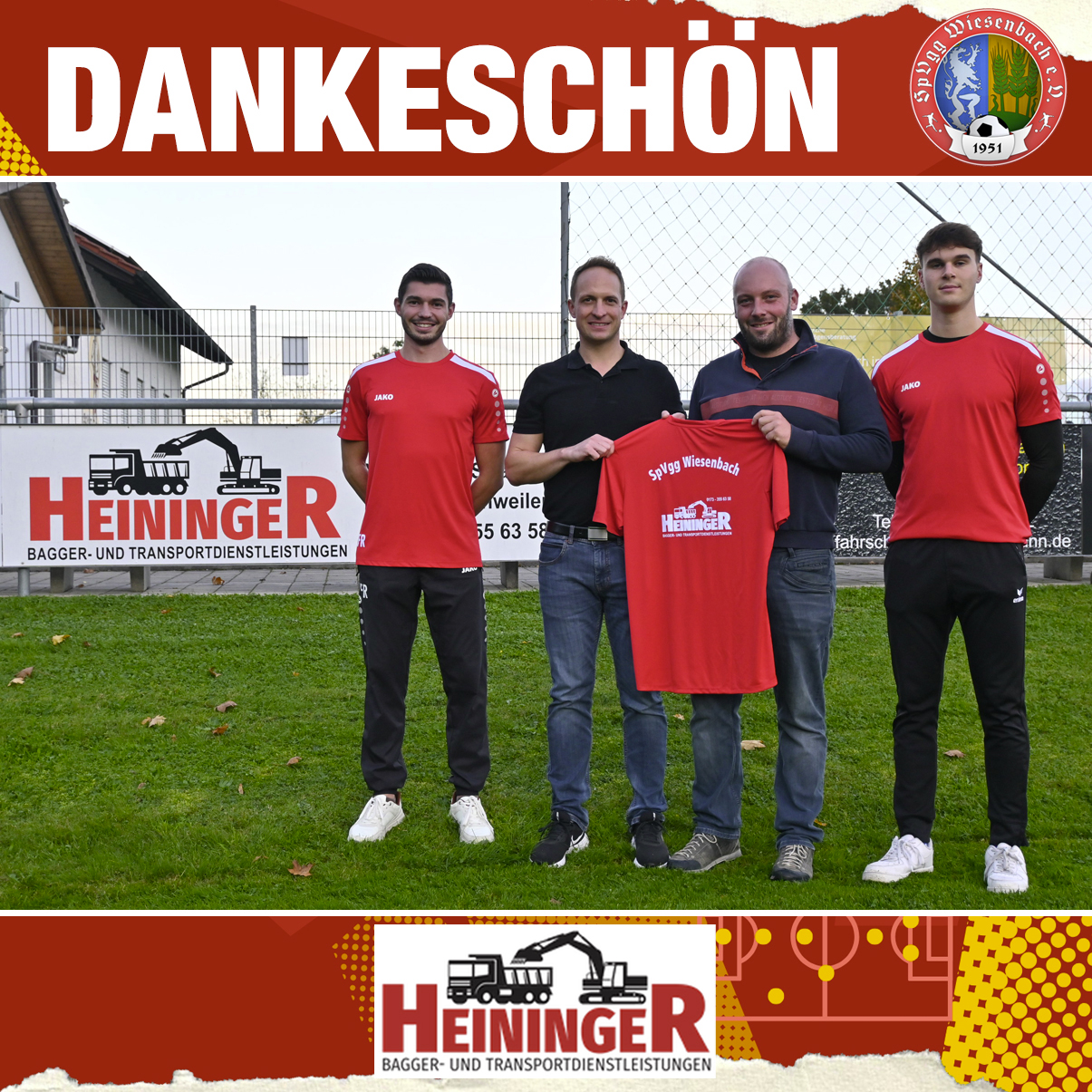 Gemäß dem Firmenmotto "Wir bewegen was" unseres Sponsors Bagger und Transportdienstleistungen Heininger bewegen sich die Spieler der SpVgg Wiesenbach und der Spielgemeinschaft mit Behlingen-Ried seit Beginn der Saison 24/25 mit neuen T-Shirts des in Wattenweiler ansässigen Unternehmens.