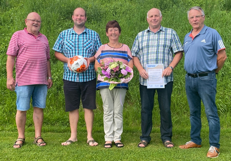 Pandemiebedingt „etwas“ verspätet wurde die Familie Aleiter von Bezirks-Ehrenamtsreferent Günther Brenner im Rahmen des von BFV und BR 2019 neu ausgelobten Sonderpreises „Bayerns Fußballfamilien 2019“ geehrt. Treffend die einführenden Worte des Verbandes: „Ihr zweites Wohnzimmer ist der Fußballplatz“ – und doch noch etwas mehr bei Familie Aleiter und ihrem Verein, der SpVgg Wiesenbach.