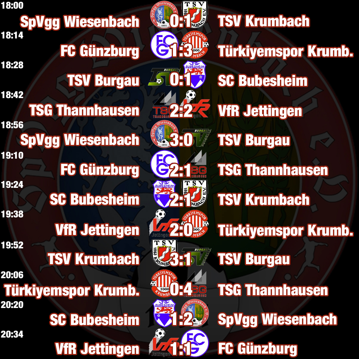 | P1 | 22:00 | FC Günzburg | SpVgg Wiesenbach | 1:2 | Video |